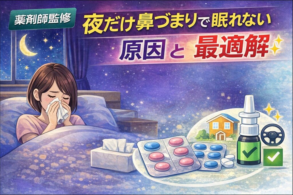 【薬剤師監修】夜だけ鼻づまりで眠れない原因と最適解|寝室ハウスダスト対策+市販薬の選び方【保存版】